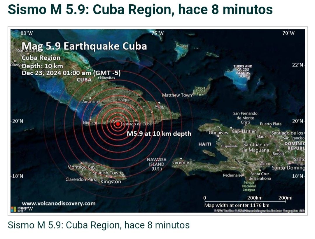 Según el Centro Geológico de los Estados Unidos, el movimiento acaeció a la 1:00, con una intensidad de 5.9 a unos 37 km al sur de la localidad de Guisa, en la provincia de Granma, y a una profundidad de 22 km.