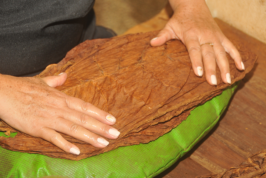 Magalis habla un poco y enseguida ríe, con la alegría que le da sentirse realizada en su quehacer diario. Domina cada proceso relacionado con el tabaco, tanto en la teoría como en la práctica, y explica con calma cada detalle, como si lo hiciera delante de estudiantes.