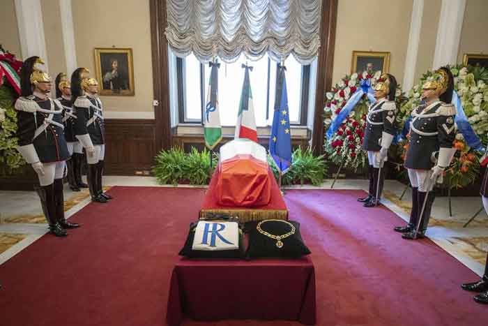 Entre los oradores se encontraban el presidente de la Cámara, Lorenzo Fontana, y el del Senado Ignazio La Russa, así como Gentiloni, quien calificó al fallecido dirigente como "un gran reformista" y un "símbolo de la credibilidad y de la fuerza de las instituciones de la República".