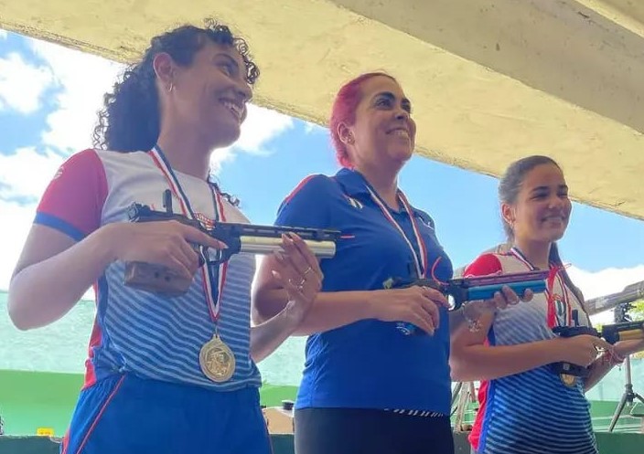 La presea dorada la mereció la matancera Laina Pérez, con puntaje de 239.6, y el bronce para la cienfueguera Melani Abreu, con 205.4. Anteriormente, se disputaron las medallas en el fusil de aire a 10 metros para damas y hombres.