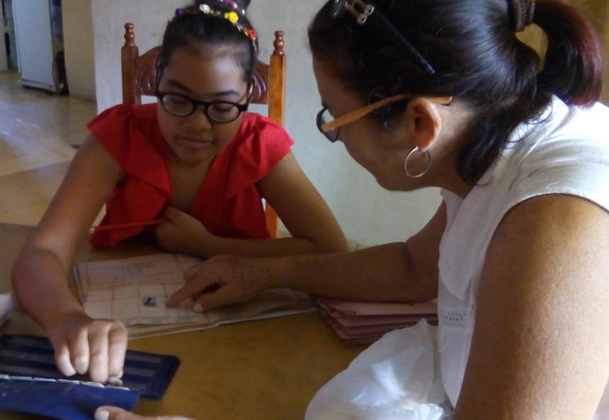 No obstante, los "secretos" de esa difícil enseñanza se nos revelarían después de ese primer diálogo con la educadora de la escuela Jorge Aleaga Peña, cuando la vimos en plena acción, sin dogmas, y aventurada al universo esencial de una de sus alumnas.