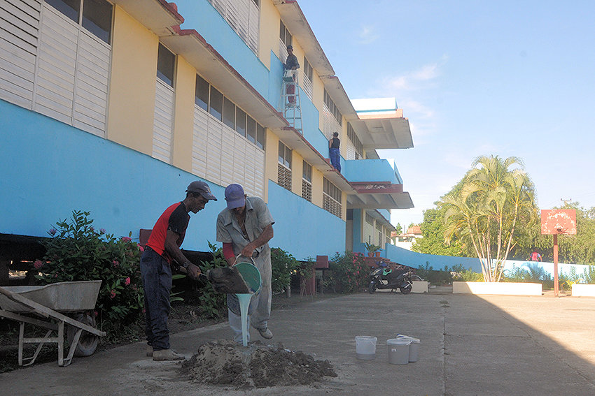 Una brigada de la Empresa Provincial de Abastecimiento y Servicios a la Educación (Epase Las Tunas) trabaja en la cerca perimetral, la pintura interior y exterior, incluida la de la carpintería metálica; la reparación de los baños, la cocina comedor, y del mural que identifica al plantel.