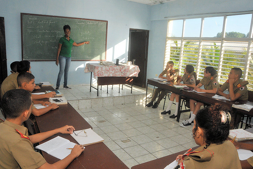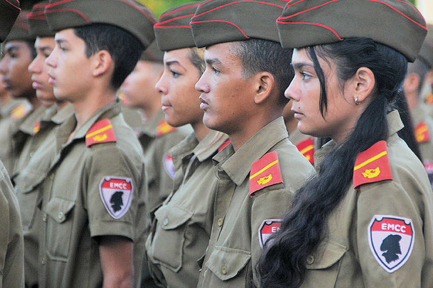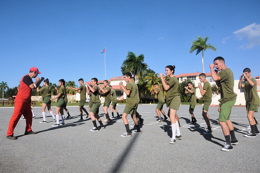 Como la profe Marianela, muchos docentes se mantienen activos en el centro apostando por una formación integral, que combina el programa de estudios de la Enseñanza Preuniversitaria con los valores que son precisos en los jóvenes con una evidente vocación militar.