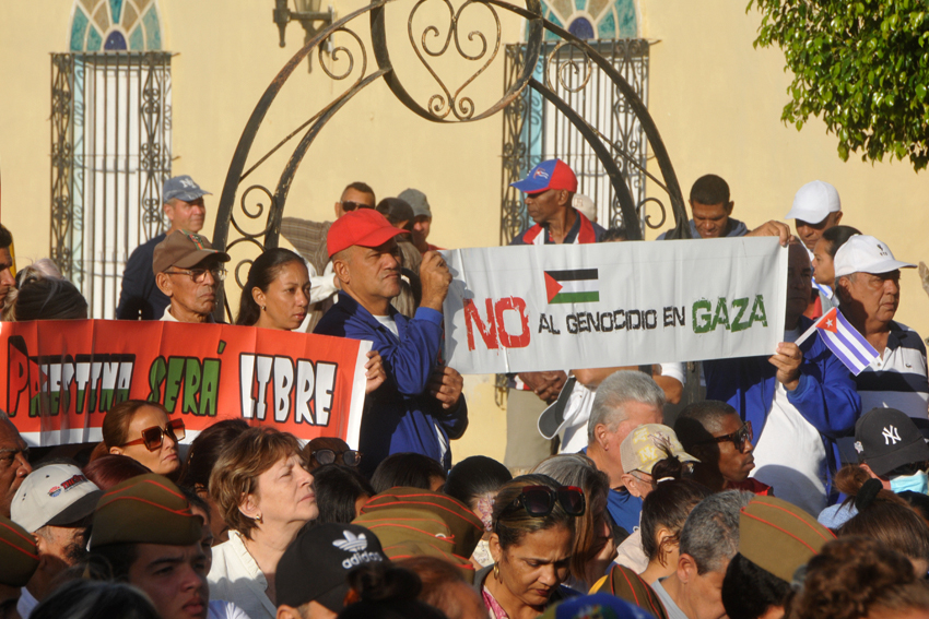 Las Tunas.- Canciones y poemas rompieron la calma del sábado en la ciudad de Las Tunas para exigir, desde la Plaza Cultural de esta comarca, el fin del genocidio contra el pueblo palestino.