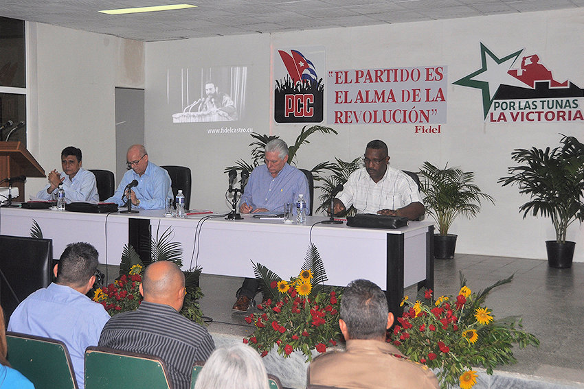 Las Tunas.- "Nadie nos regalará lo que podemos hacer por nosotros mismos", dijo el primer secretario del Comité Central del Partido y presidente de la República, Miguel Díaz-Canel Bermúdez, ante el Pleno Extraordinario ampliado del Comité Provincial del Partido en este territorio oriental. Acompañado por Humberto Camilo Fernández Suárez, jefe de Política de Cuadros del Comité Central, y por las principales autoridades políticas y de Gobierno en esta parte del país, Díaz-Canel calificó este encuentro como una parada en su constante contacto con la ciudadanía. "El mes próximo regresaremos a los municipios", anunció.