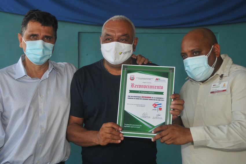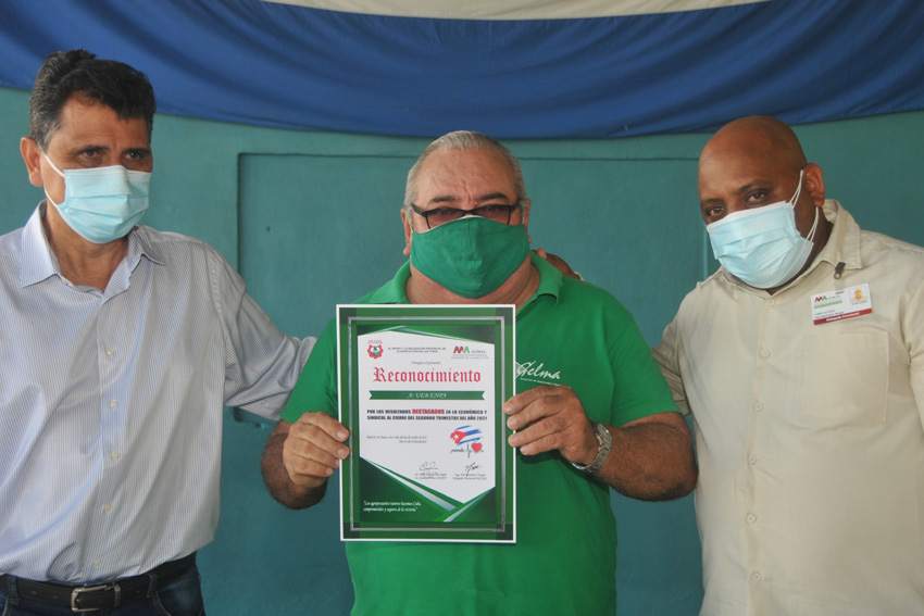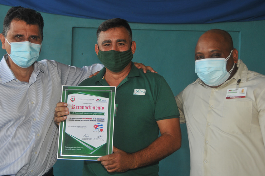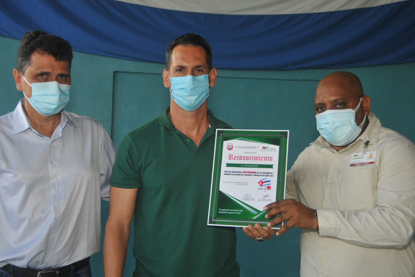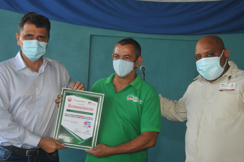 Durante la cita, también estimularon a dos de los emprendedores de los mercados de nuevo tipo en la ciudad capital, Argel Frank Fundora Acosta y Duniezki Guerrero de la Cruz, a cargo de Mercasa y Leningrado, respectivamente, a quienes se les reconoció su aporte incondicional a la producción de alimentos en el presente calendario.